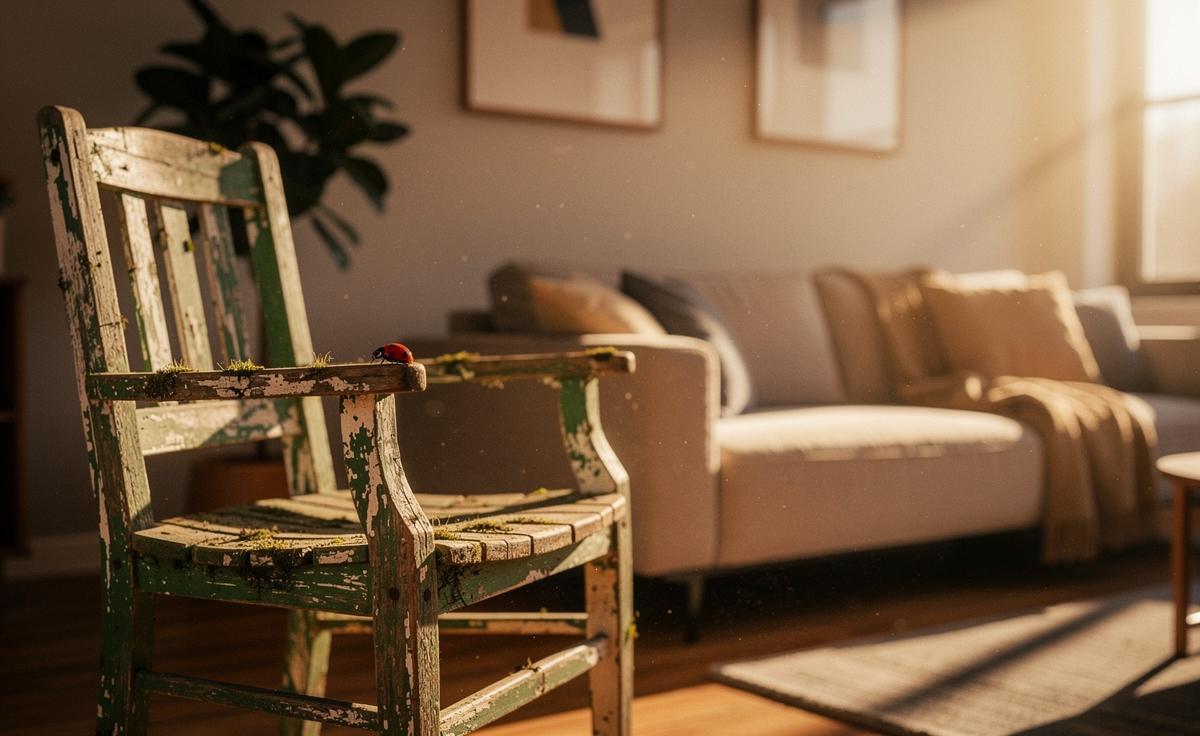 Die schrägsten Stühle brechen die oft sterile Perfektion unserer Innenräume. Ein windschiefer Bistro-Stuhl aus Blech neben einem modernen Sofa. Eine knorrige Baumwurzel als Hocker unter dem Esstisch. Diese Gegenstände bringen Authentizität und Geschichte in den Raum. Sie fordern die konventionelle Einrichtungsästhetik heraus und schaffen Spannung. Der Gärtner sieht darin eine Parallele zur Gartenplanung: „Ein perfekt gestutzter Buchsbaum wirkt steril. Erst eine wild wuchernde Malve daneben macht das Bild lebendig.“ Der herein geholte Gartenstuhl ist diese Malve für das Wohnzimmer. Er erinnert an Freiheit, Wachstum und Ungezwungenheit. Sein Material – verwittertes Holz, kühles Metall, grobes Geflecht – bietet einen haptischen und visuellen Kontrast zu Polstern und Teppichen. Diese gezielte Unordnung, diese Integration des scheinbar Unpassenden, kann die Kreativität anregen und ein Gefühl von Gelassenheit vermitteln. Es ist eine Einladung, Perfektionismus abzulegen und das Leben in seiner ganzen, schönen Unvollkommenheit willkommen zu heißen.